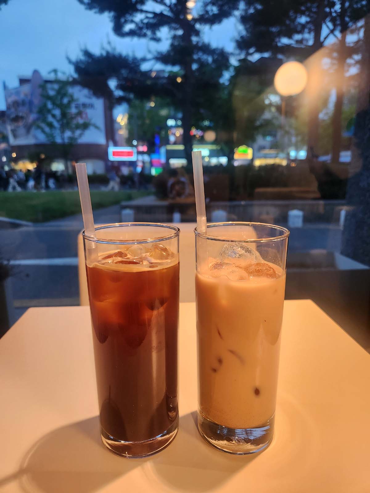 저희는 저녁 식사 후에 들른 거라, 부담 없이 아이스 아메리카노와 밀크티를 주문했어요.