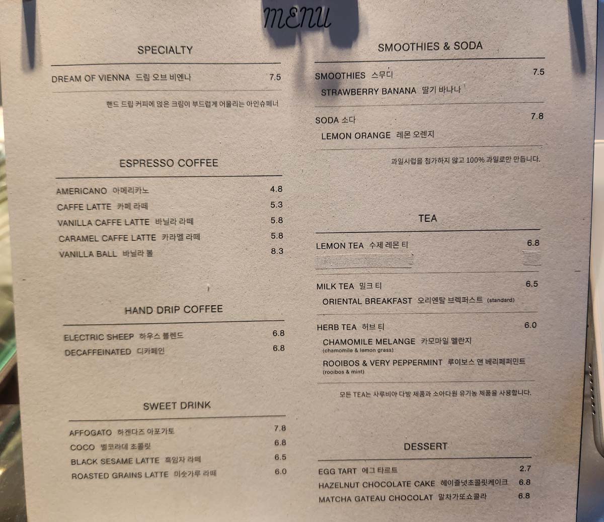 이곳은 디저트보다는 음료가 중심인 카페였어요.